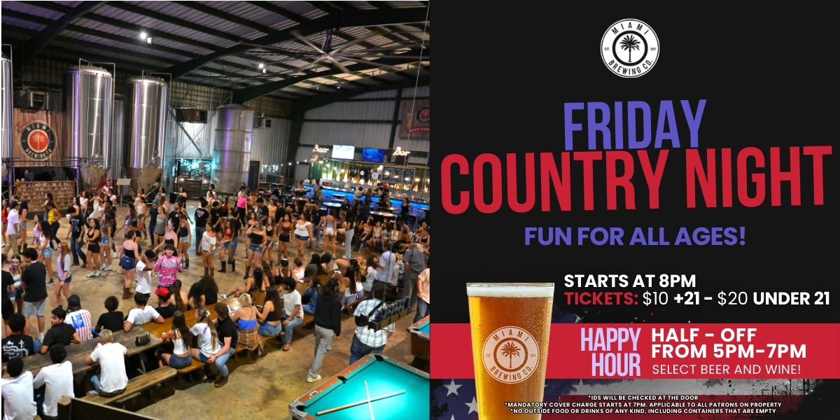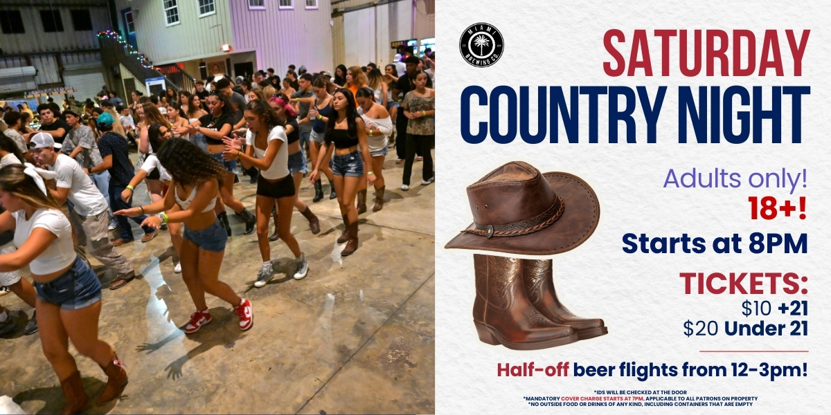 Saturday nights were made for country lovers 🤠✨ Join us at Miami Brewing Company for Saturday Country Night, an adults-only evening of line dancing, live country beats, and ice-cold craft beer. Grab your boots, hit the dance floor, and make your weekend unforgettable under the brewery lights. Because Saturday nights are […] |